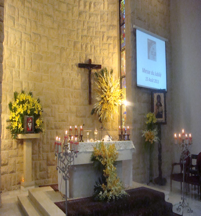 Messe d’action de grâce pour un Jubilé de 75 et 50 ans de vie religieuse célébrée par le Révérend Père Kolvenback à la Maison Notre Dame des Sœurs des Saints Cœurs le Jeudi 15 Aout 2013 à 17h