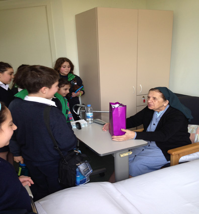 Visite des élèves SSCC Ain Najm à la Maison Notre Dame à l'occasion de la Journée Mondiale du Malade.